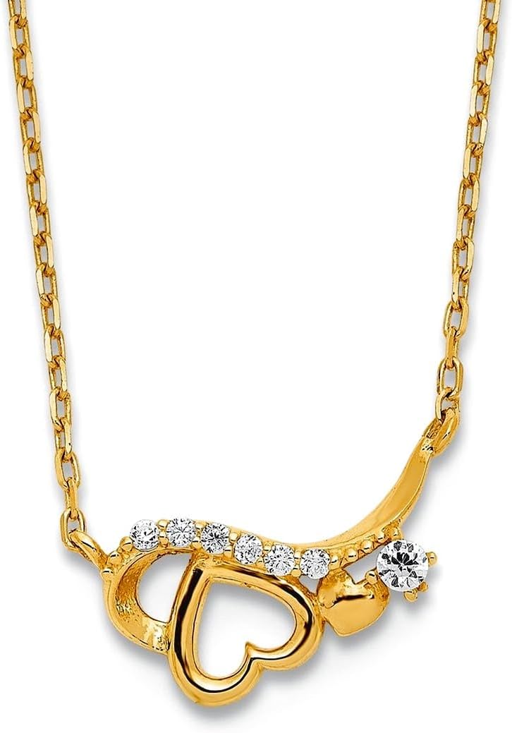 JewelryWeb 14k Gold Polished Cubic Zirconia Love Heart With 1.25 In Ext Necklace 15 Inch 13mm Wide Pendant Necklace