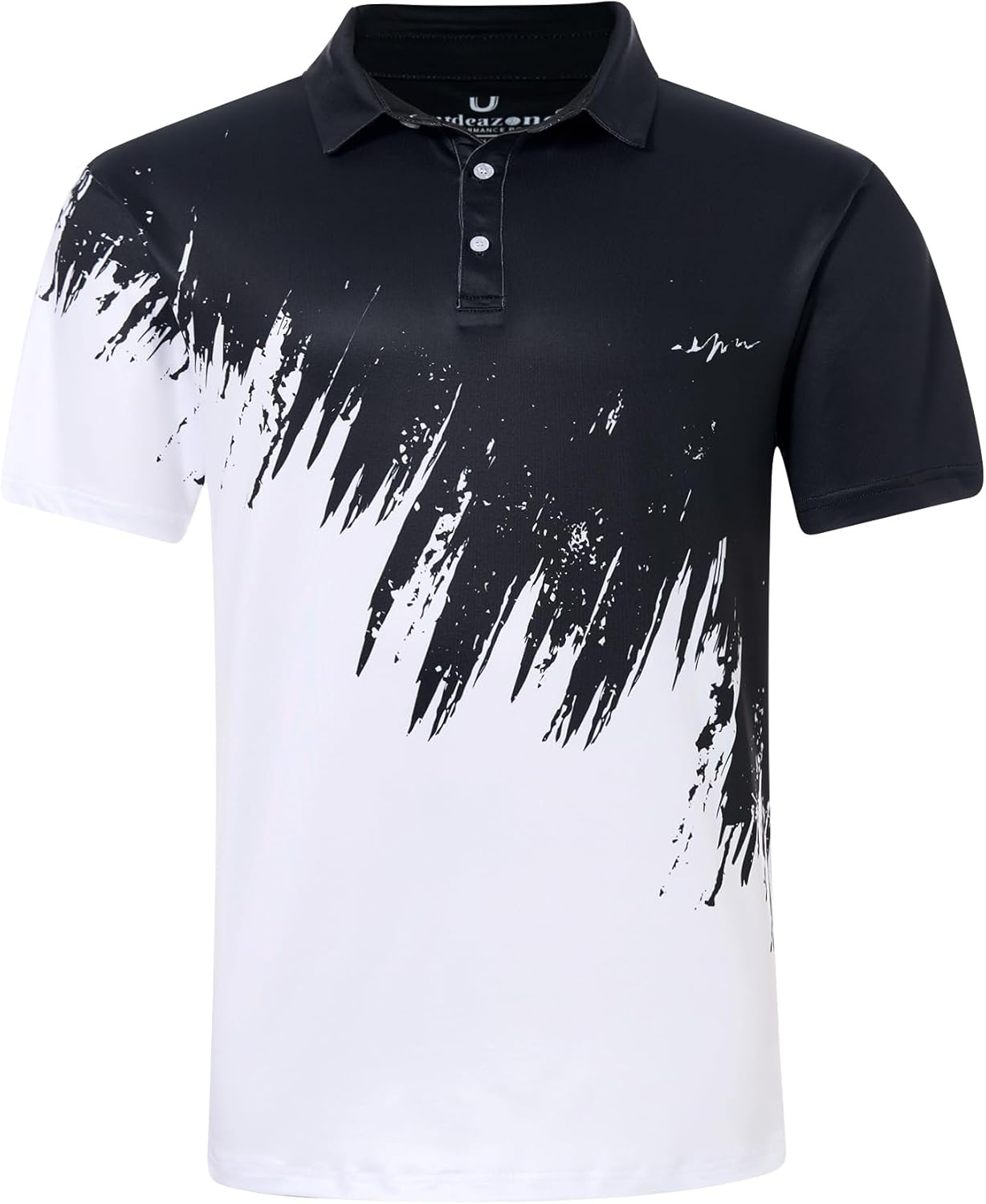 uideazone Mens Golf Shirt Dry Fit Athletic Polo Shirts Moisture Wicking Performance 3D Print Short Sleeve