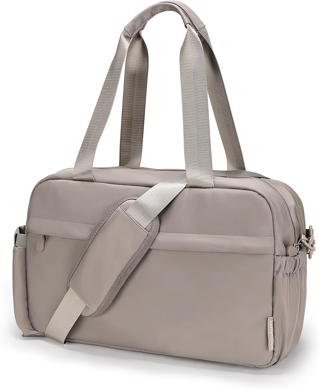Expandable Duffle Bag for Travel, Carry On Luggage & Gym Bag for Women & Men, Small Personal Item Travel Bag, Overnight Weekender & Tote for Airplane Essentials (Taupe)