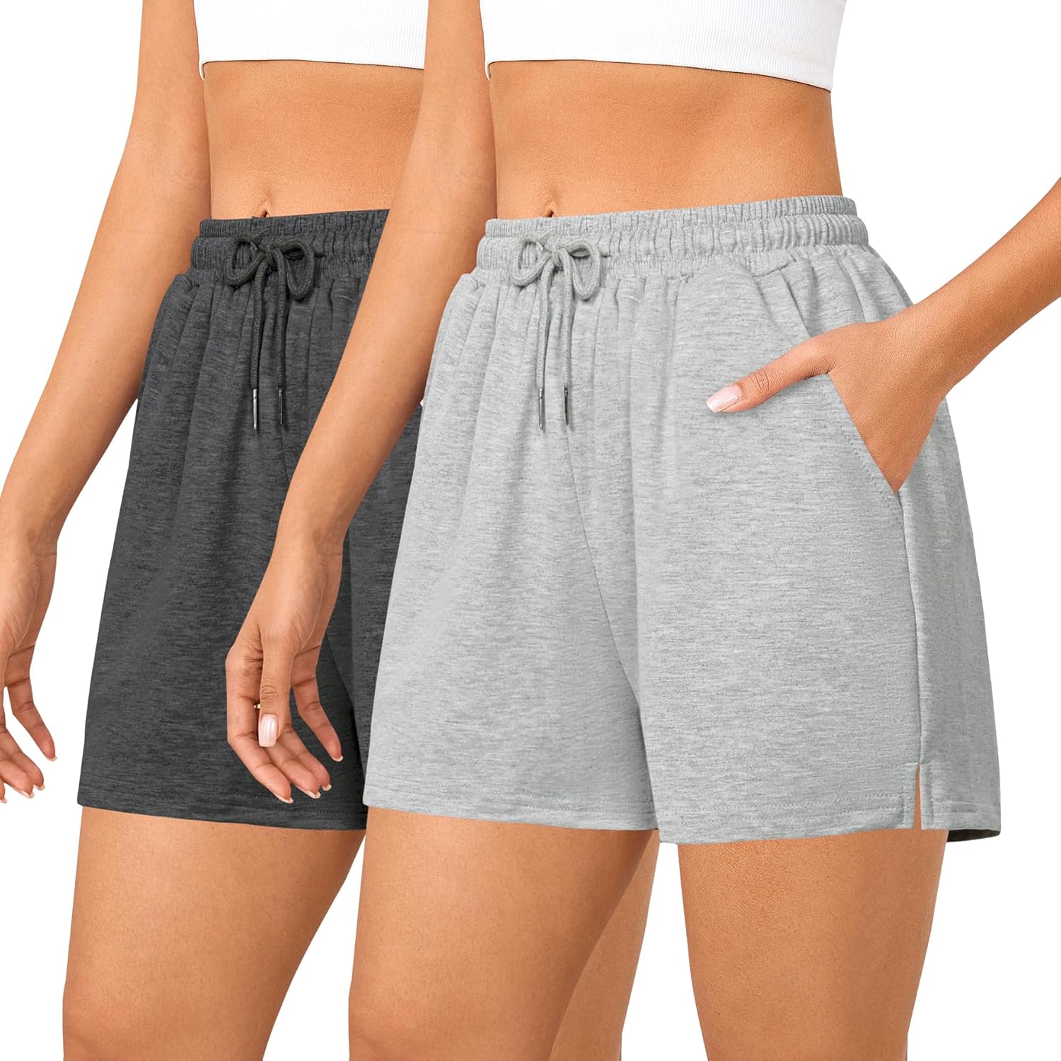 Quenteen Women's 4" Comfy Drawstring Elastic Waist Casual Cotton Sweat Shorts Workout Athletic Shorts with Pockets