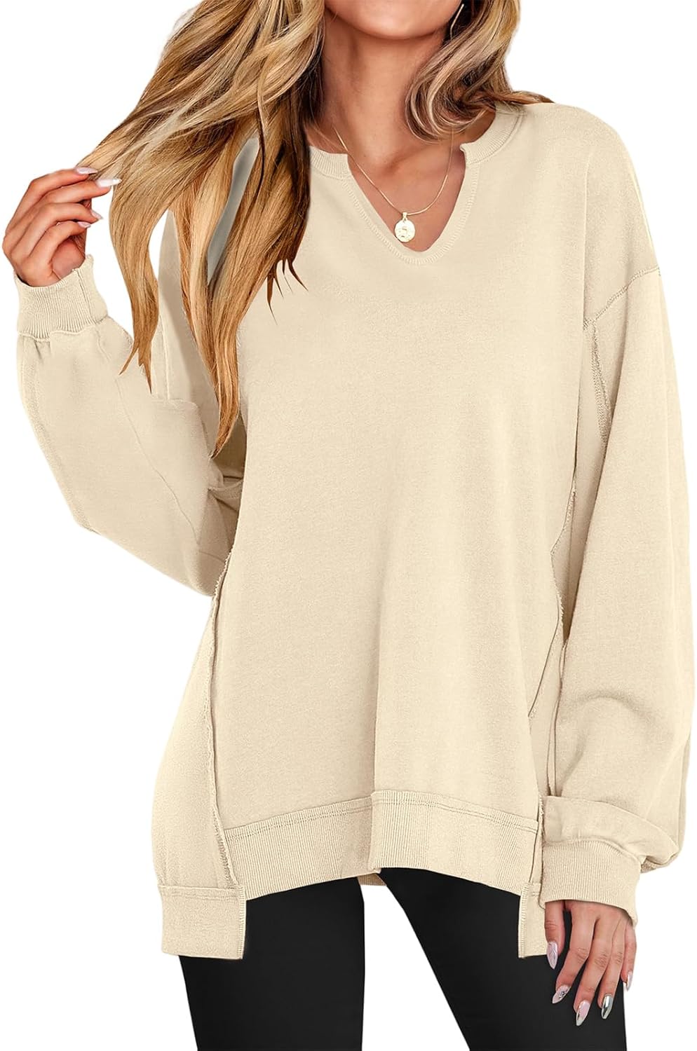 Women Oversized V Neck Sweatshirt Long Sleeve Shirts Tunic Sweatshirts Loose Pullover Tops 2025 Fall Fashion Outfits