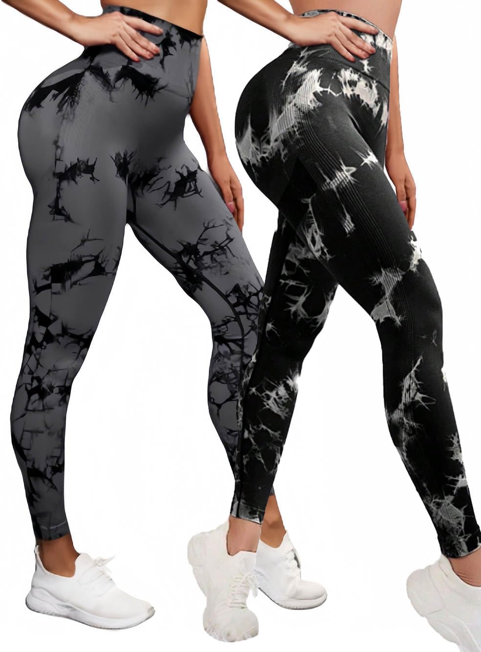 Women’s Tie-Dye Workout Leggings, High-Waisted Yoga Pants, Scrunch Butt Lifting, Tummy Control (Black/Grey)
