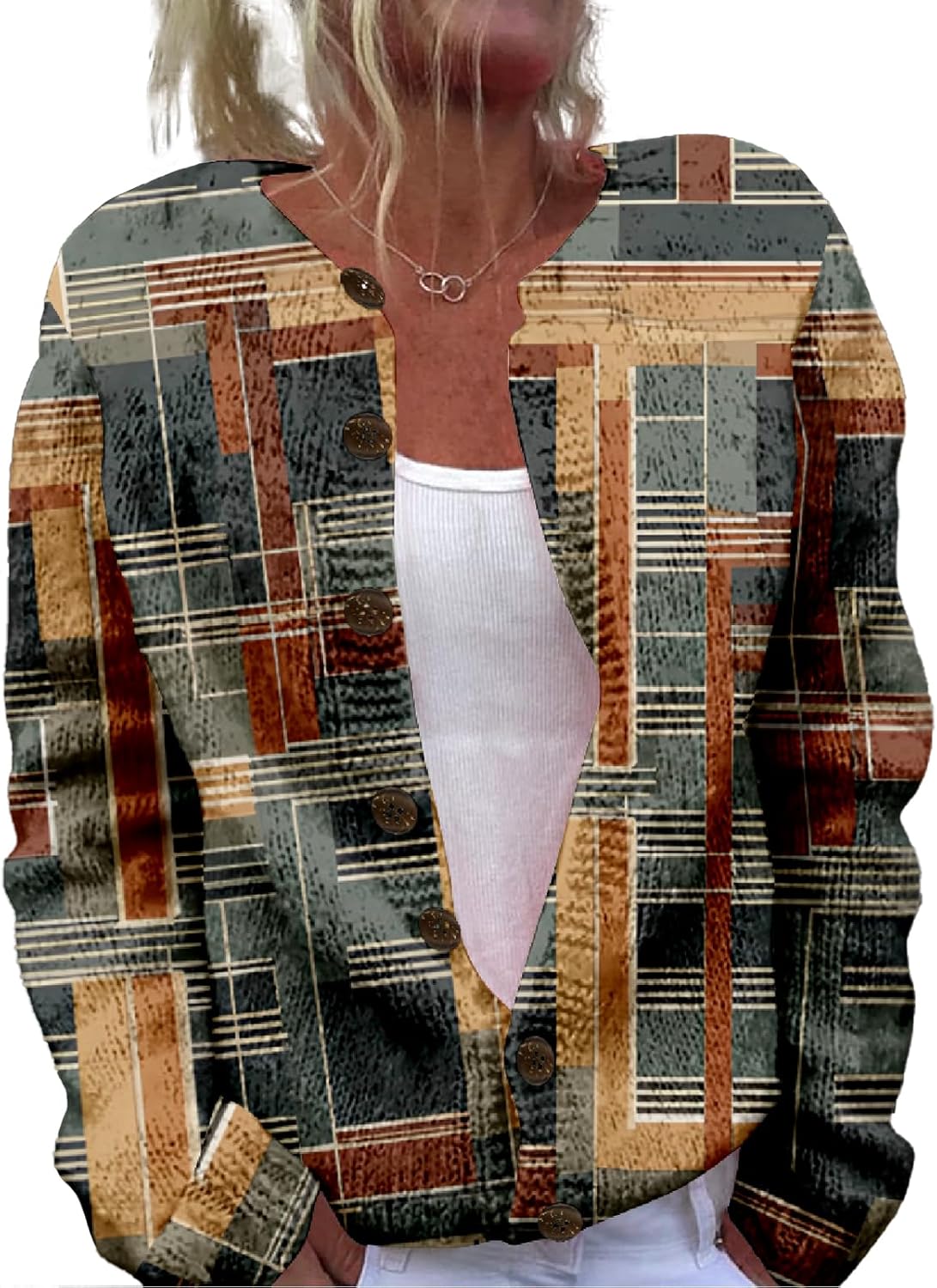 Striped Sweater Women Western Aztec Print Cardigan Button Up Cropped Knitted Oversized Fashion Open Front Blouses
