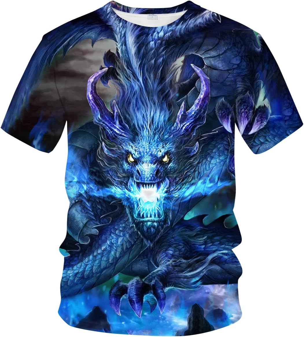 LAOLIUSN Men's Dragon T Shirt Summer Short Sleeve Tees Tops Animal Theme Shirt Anime Graphic Shirt