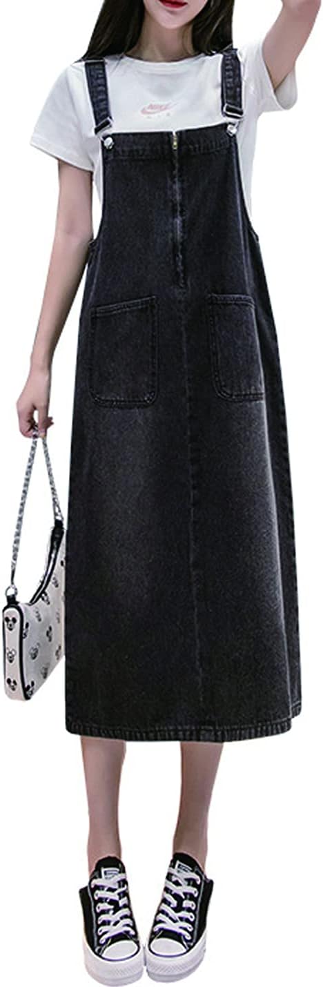 Women's Denim Strap Dress Large Size Loose Casual Solid Color Mid-Length Skirt