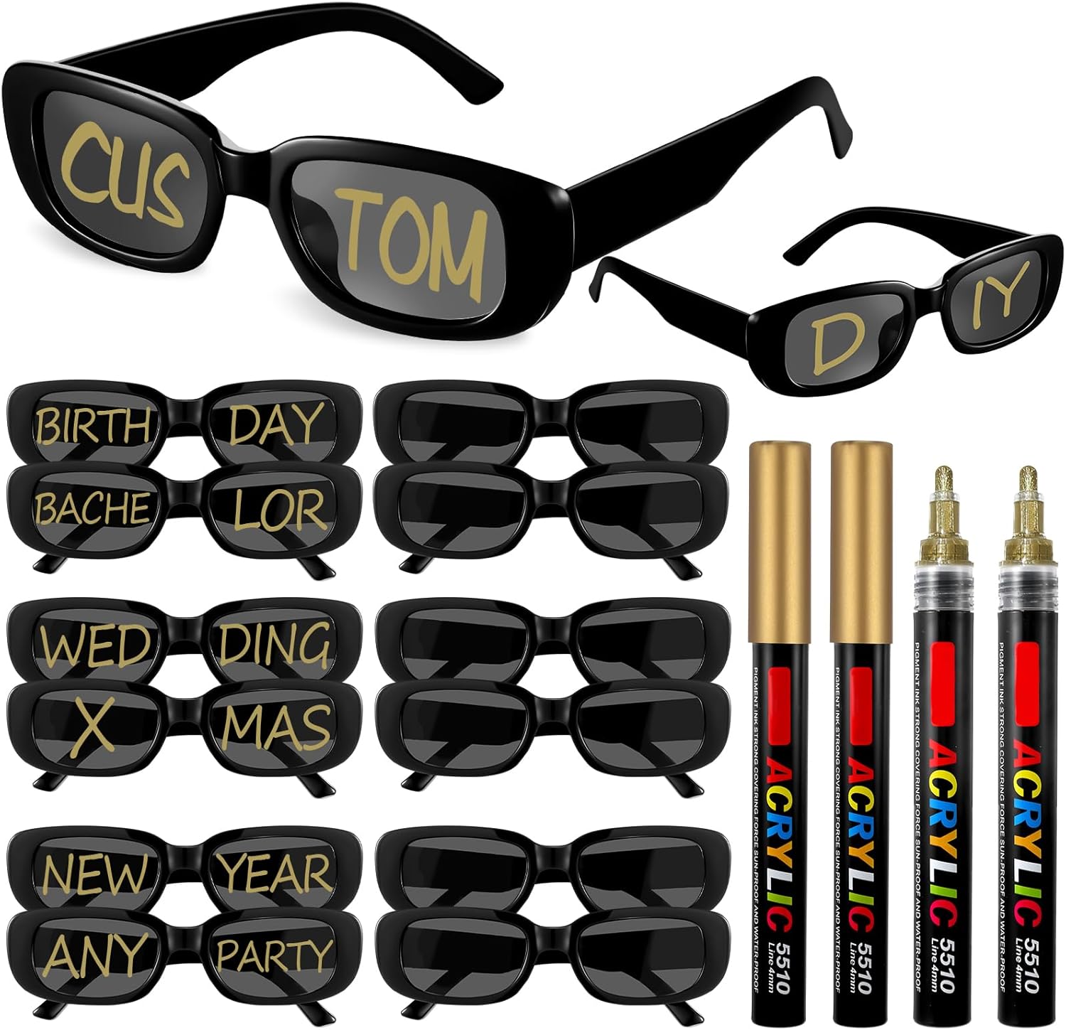 Flutesan Personalized Rectangle Sunglasses with Marker Pens for Adult DIY Custom Birthday Wedding