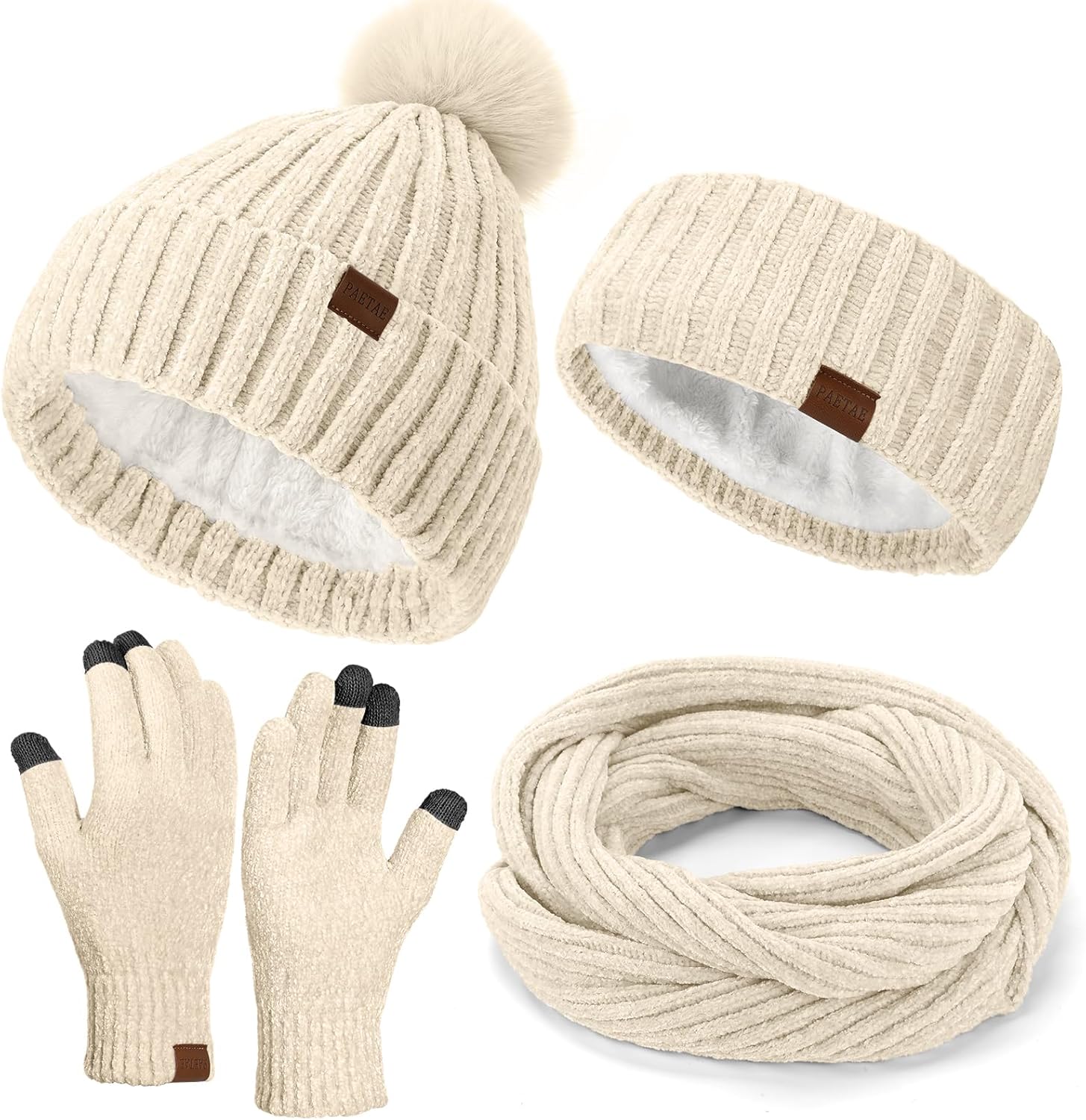 Winter Hats Gloves Scarf Set for Women, Beanie Hat Headband Ear Warmer, Infinity Scarf Touchscreen Gloves for Cold Weather