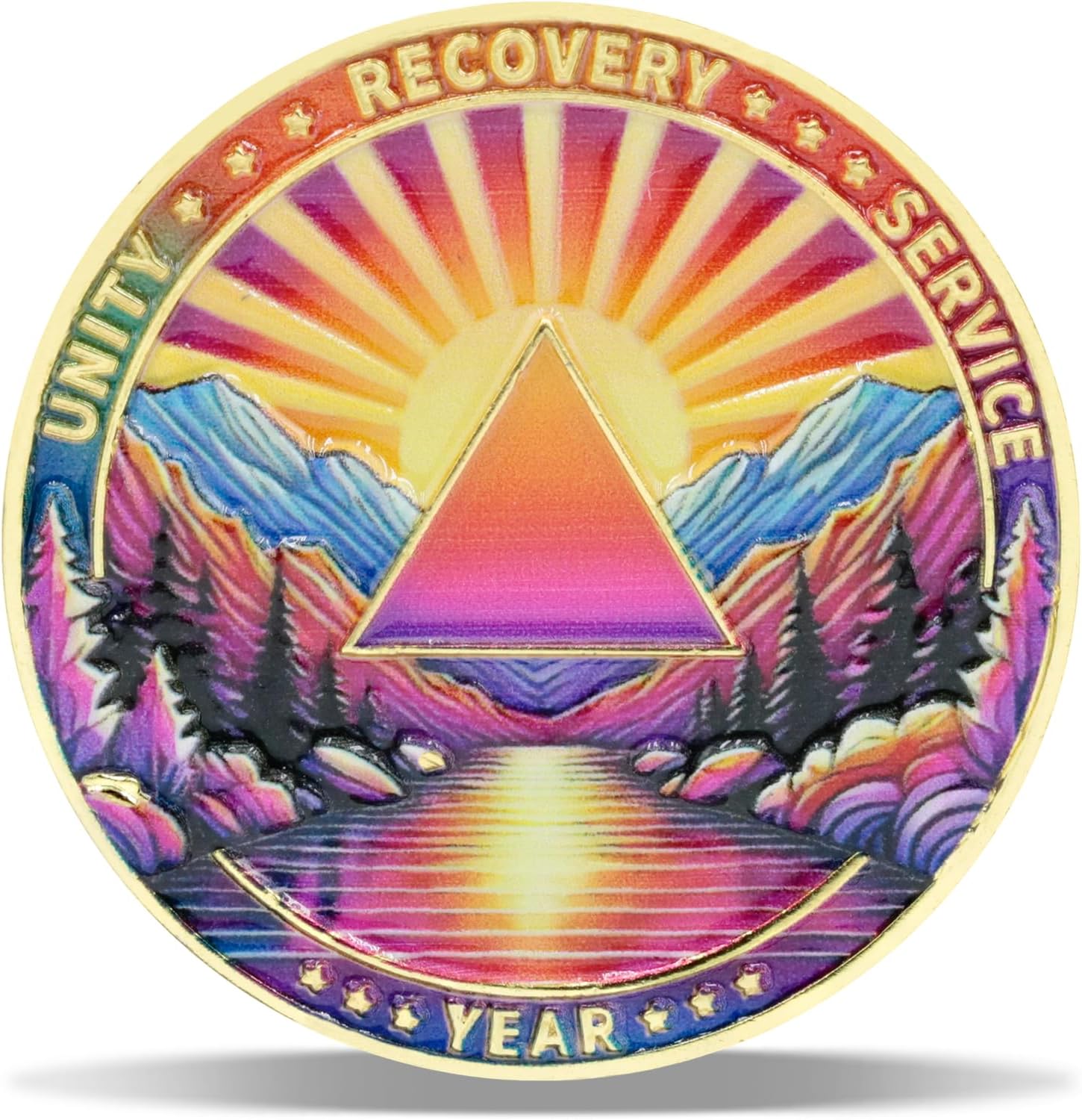 - 【Powerful Symbolism & Inspiration】 This Affirmation Dawn Voyage Sobriety Coin showcases a radiant sunrise over mountains and water with a guiding sail—symbolizing fresh starts, steady progress, and hope with each new day. Framed by the UNITY · RECOVERY · SERVICE triad and the “ONE DAY AT A TIME” motto, it’s a daily reminder to move toward the light with courage, wisdom, and grace.