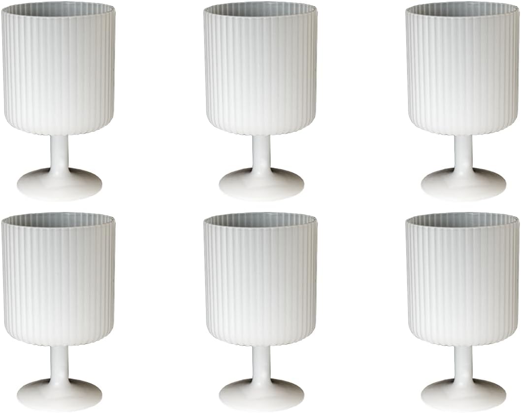 - Set of 6 white goblet polypro glasses in the Mesa Polypro collection; goblet measures 3.4" diameter by 5.7" high and holds up to 15 ounces