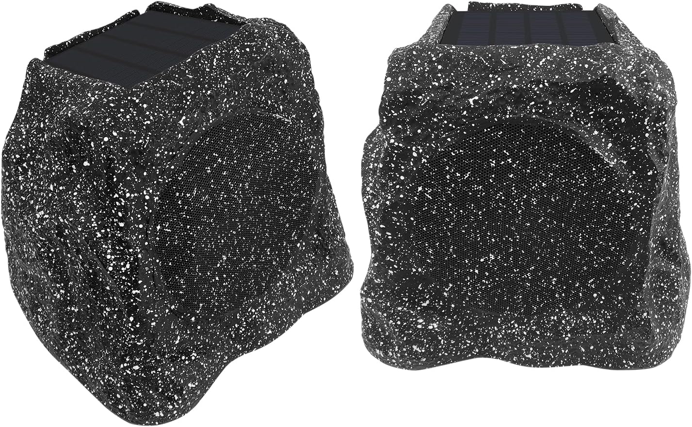 Herdio 4" Rock Bluetooth Speakers Outdoor Waterproof IPX7 Wireless Solar Max 160 Watt, TWS Connection Powered with Rechargeable Battery for Garden Patio Deck Pool Backyard(Black,1Pair)