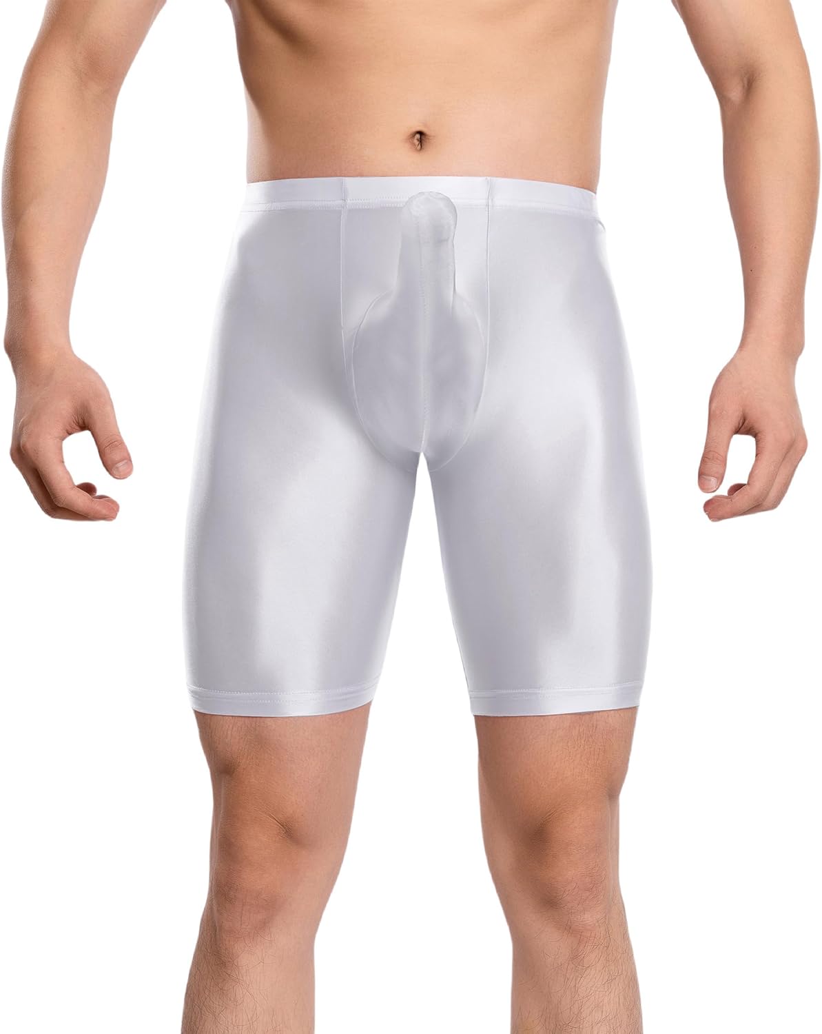 FEOYA Men's Shiny Glossy Oily Compression Shorts Tights Bulge Pouch Skinny See Through Sheer Trunks Bottoms for Bodybuilding