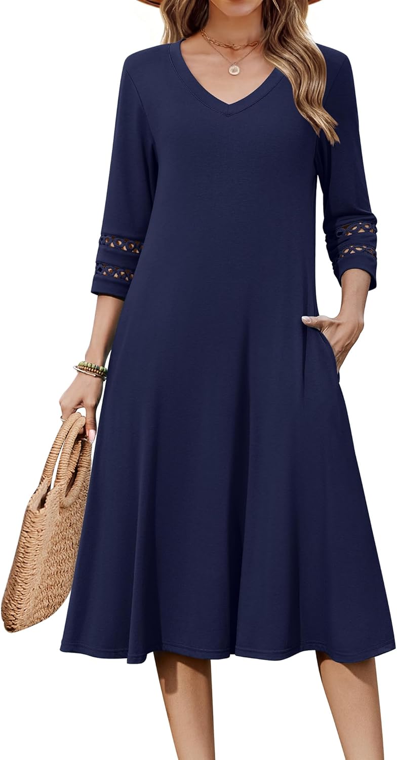 Zeagoo Women Casual Dress 3/4 Sleeve Casual Loose Midi Dress