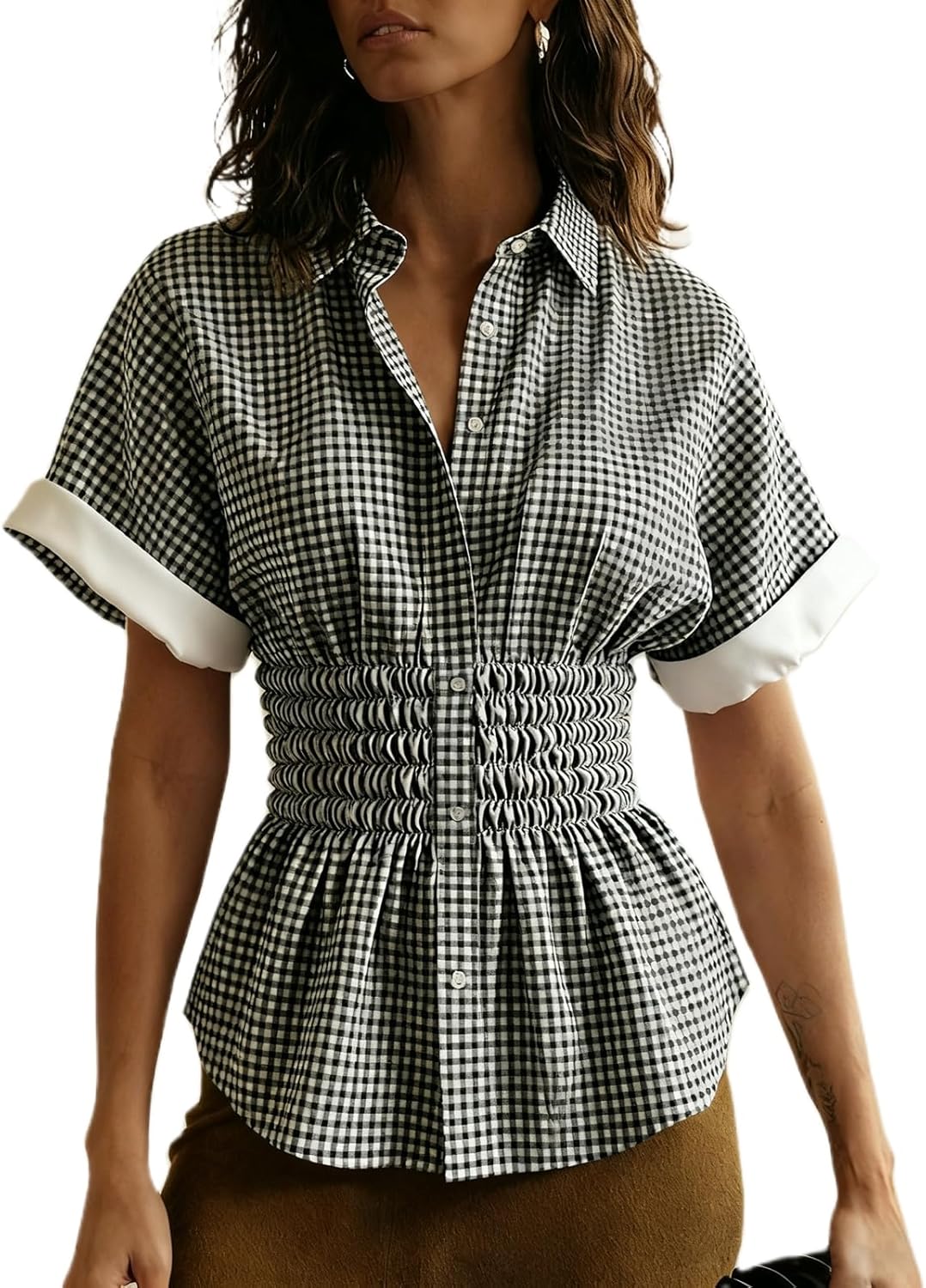 Y2K Vintage Button Down Shirt Women Teens Cute Collared Neck Short Sleeve Corset Crop Blouse Fariy Coquette Clothes