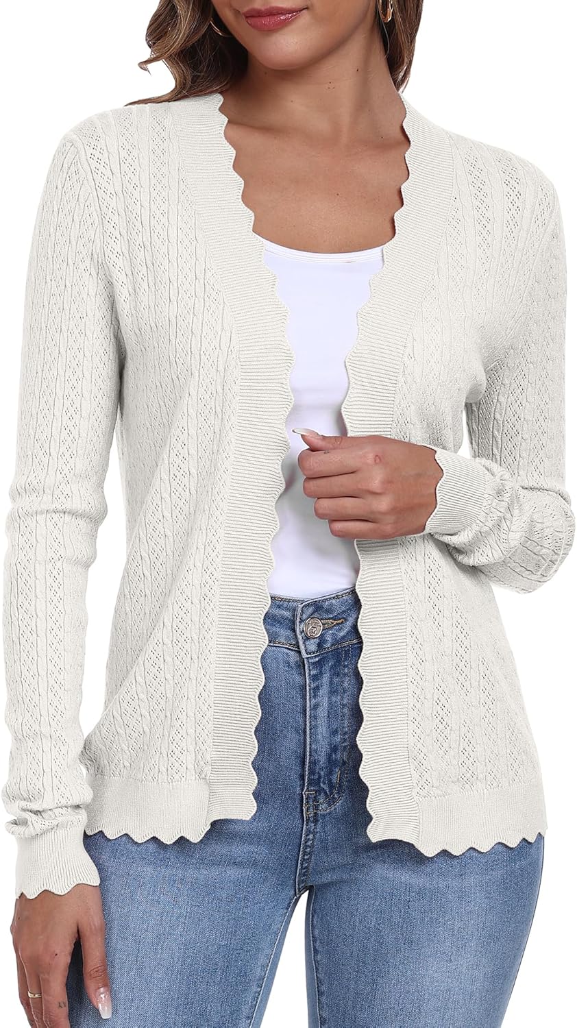 COSSEN Women's Open Front Cardigans Long Sleeve Summer Trendy Lightweight Crochet Knit Sweater