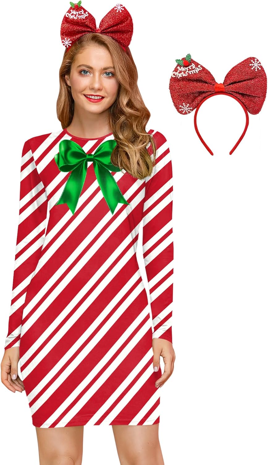 For G and PL Women's Christmas Long Sleeve Bodycon Ugly Print Dress with Hair Band