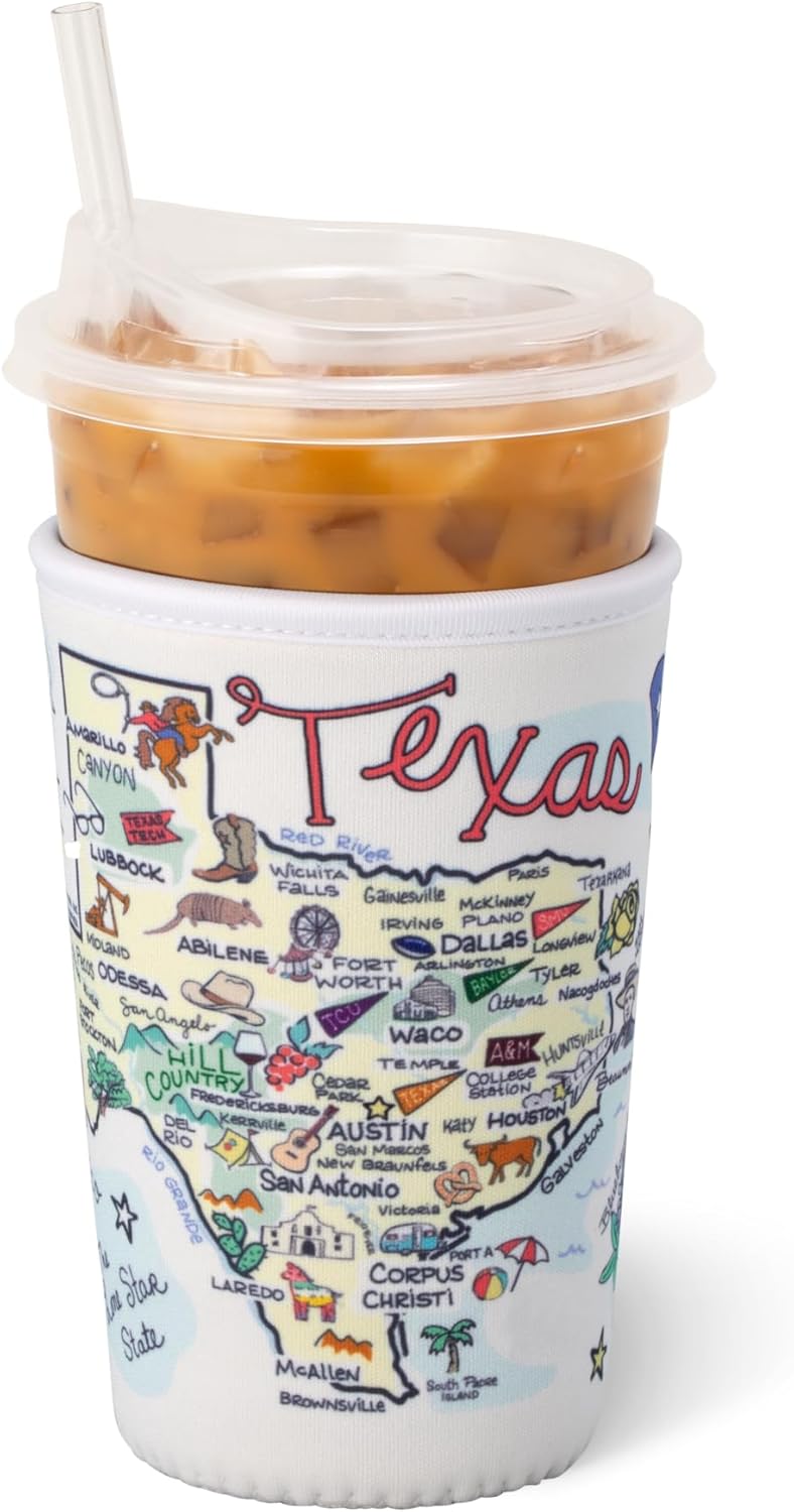 Swig Life Medium Iced Cup Coolie, Standard 22oz Iced Coffee Cup Insulator Sleeve with Handle, Neoprene Insulated Coolie Keeps Drinks Cold (Texas)