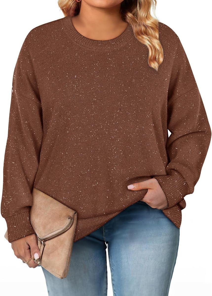 CARCOS Plus Size Sweaters for Women Solid Crew Neck Knit Tops Casual Long Sleeve Pullover Sweater Sparkly Tunic Shirts