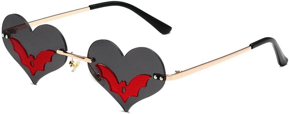 Andy's Orchids Sun Glasses, Heart-shaped Bat Sunglasses, Novel Rimless Goth Glasses for Women Men Festival Party Glasses Trendy Eyewear UV 400 Protection