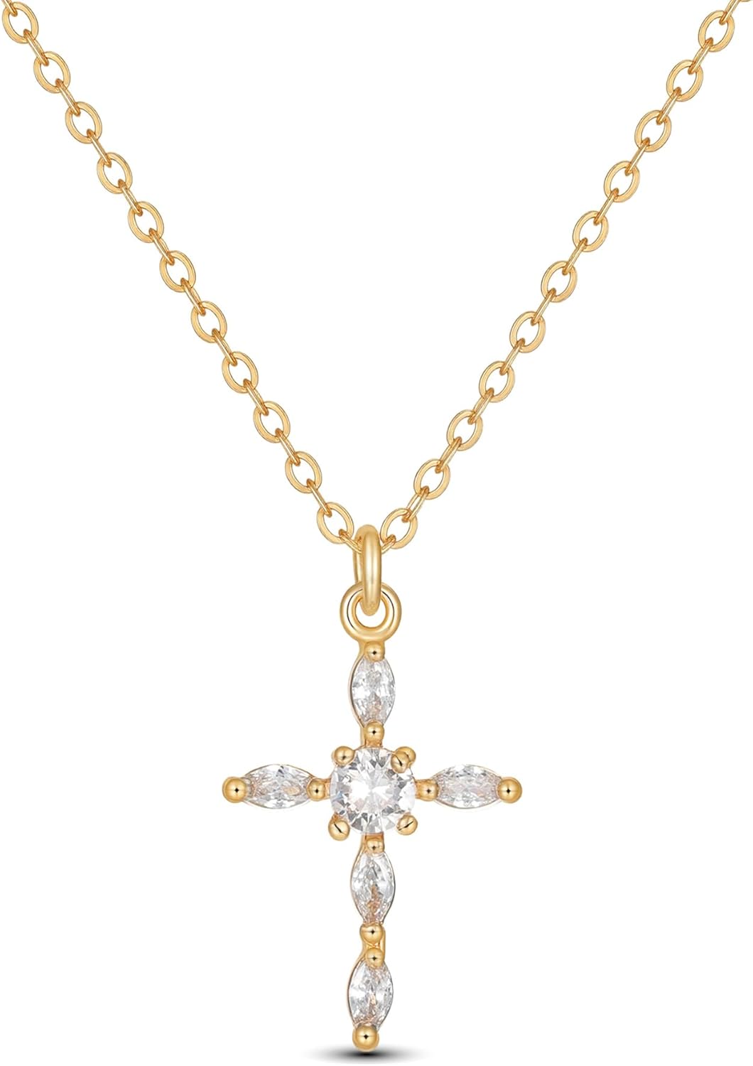 SEADAY Gold Cross Necklaces for Women,14K Gold Plated Cross Pendant Necklace,Faith Cross Necklace,Hypoallergenic & Adjustable Length,Christian Necklace Trendy Dainty Jewelry,Gifts For Women