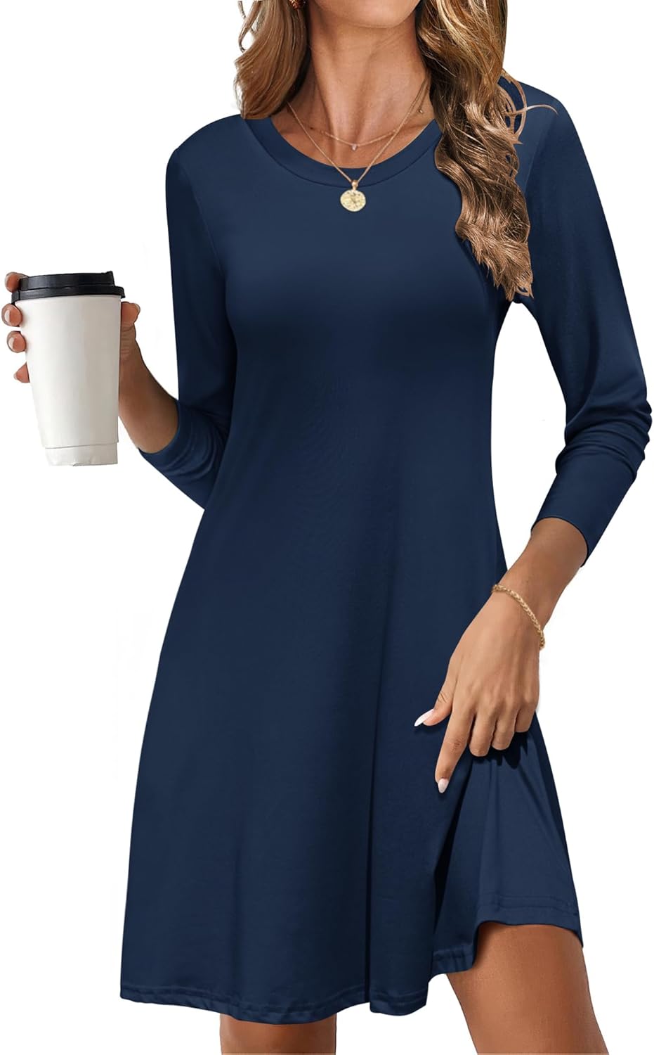 MOLERANI Women's Casual Simple Long Sleeve T-Shirt Loose Dress, Navy Blue, Medium