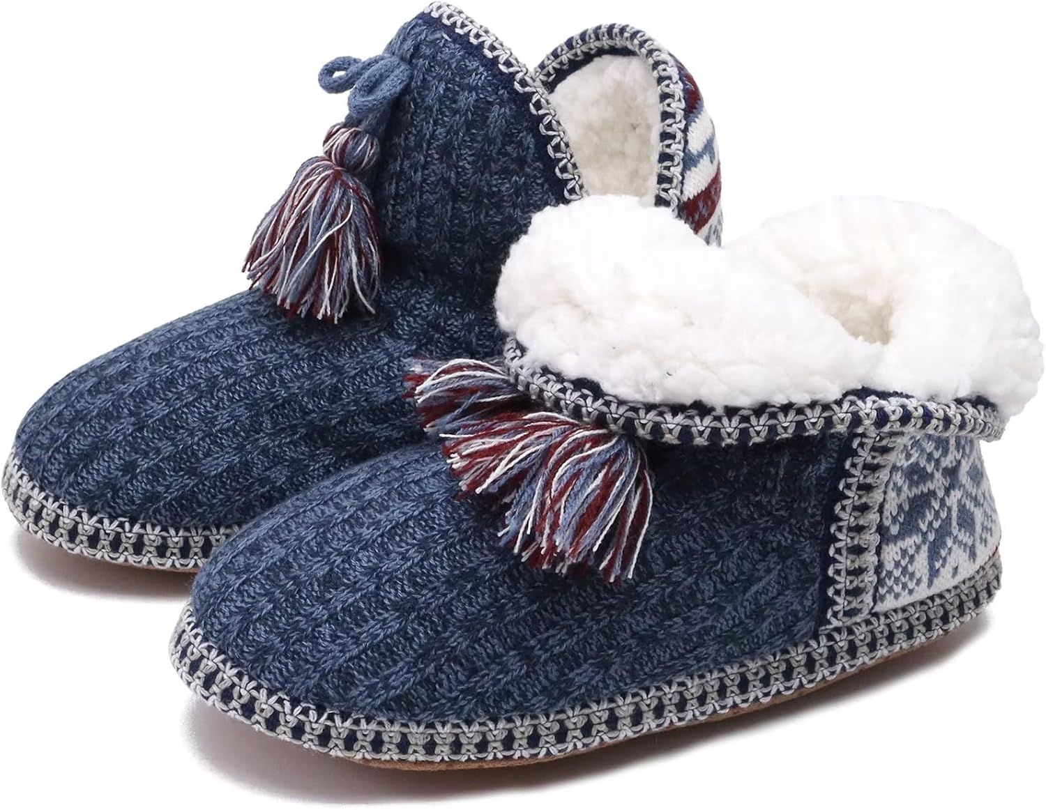 GPOS Women's Faux Cashmere Knit House Slipper Booties Cotton Quilted Warm Indoor Ankle Boots