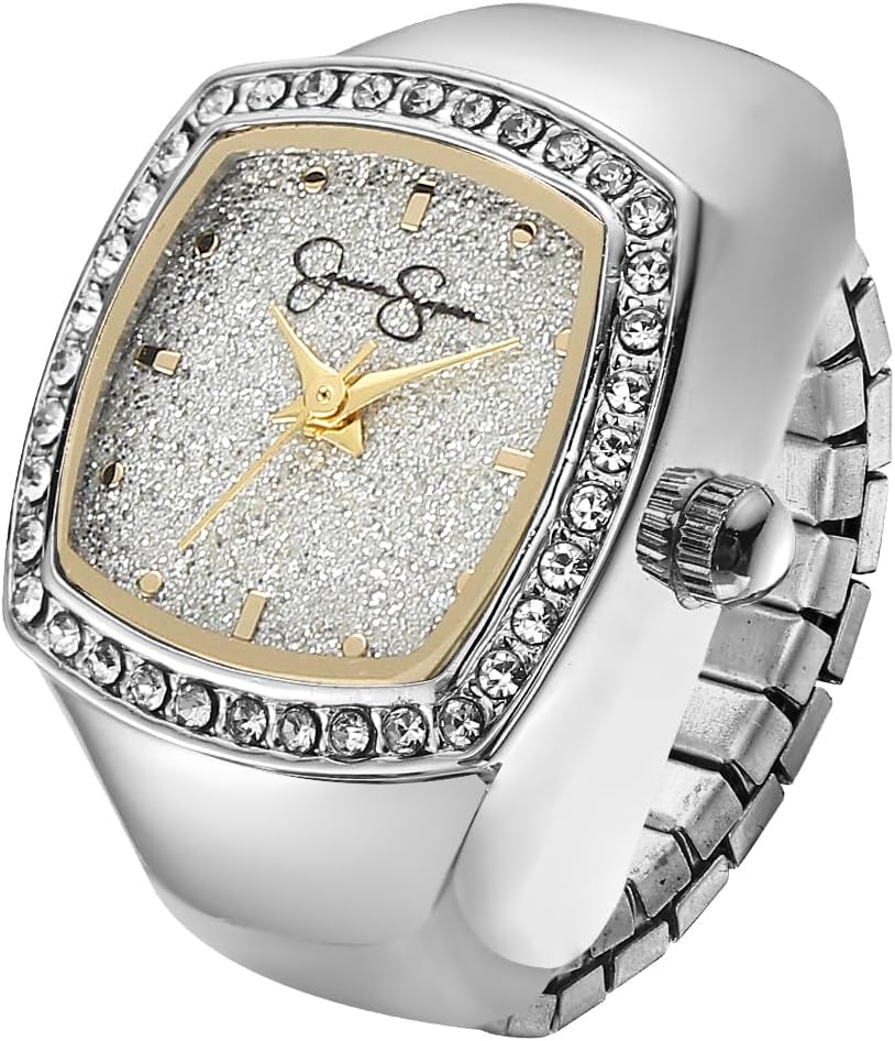 Jessica Simpson Women's Silver Adjustable Ring Watch – Crystal Bezel, Quartz Analog Mini Dial, Stretch Band Fashion Jewelry Accessory
