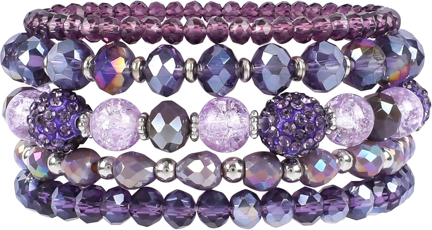 Bohemian Beaded Bracelets for Women Stackable Glass Beads Stretch Bracelets Boho Multilayered Disco Ball Faceted Crystal Beads Bracelet Set Handmade Trendy Jewelry Gift for Women
