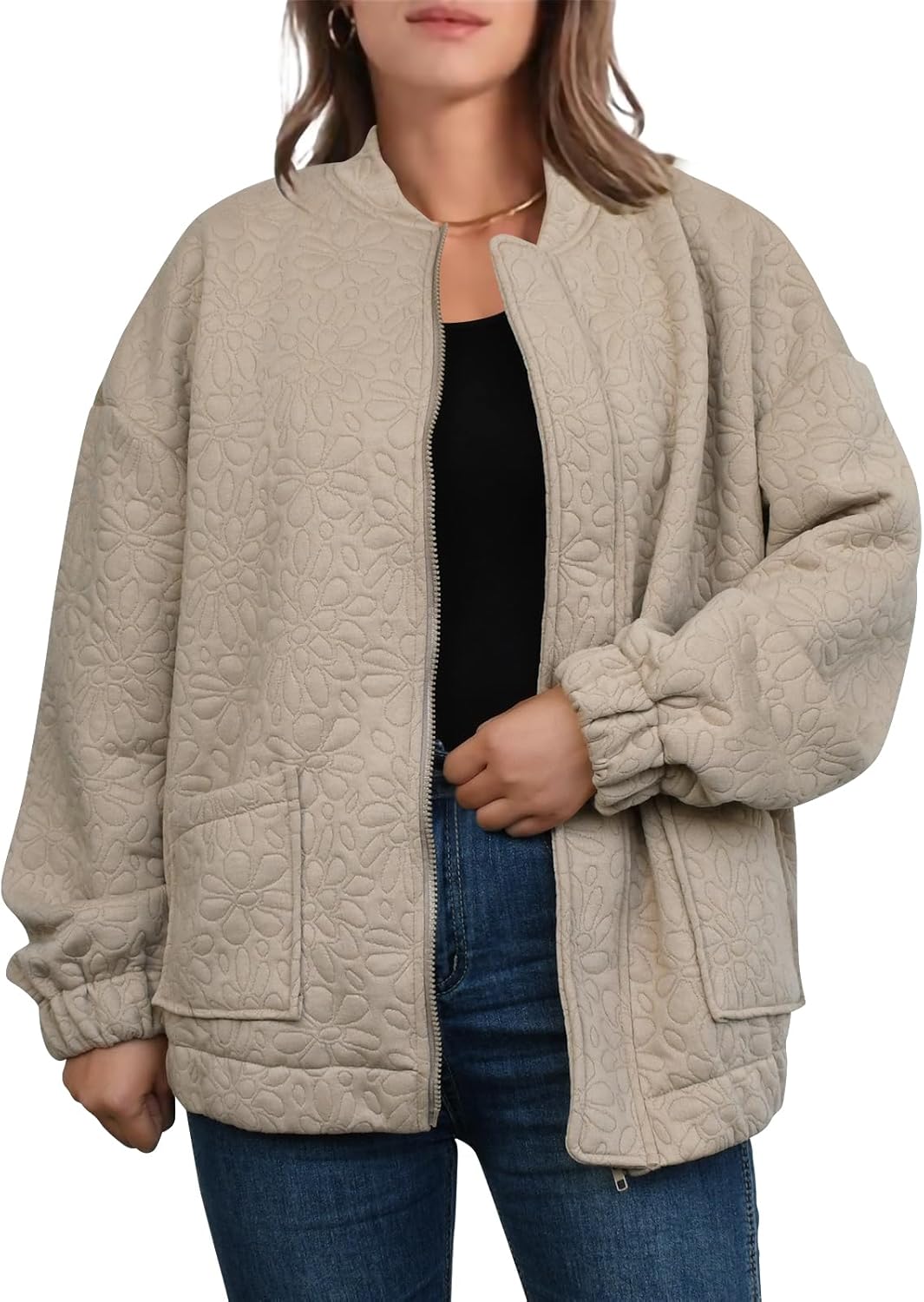 Brebebe Women Jacquard Coats Long Sleeve Lightweight Zip Up Casual Jackets