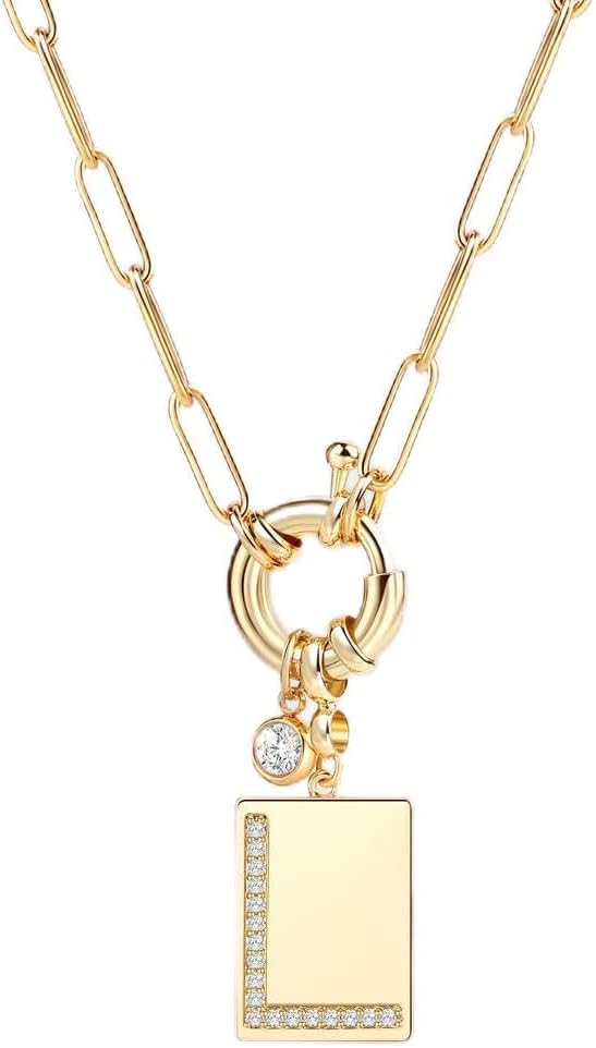 Mint & Lily Pave Initial Pendant Necklace with Paperclip Chain
