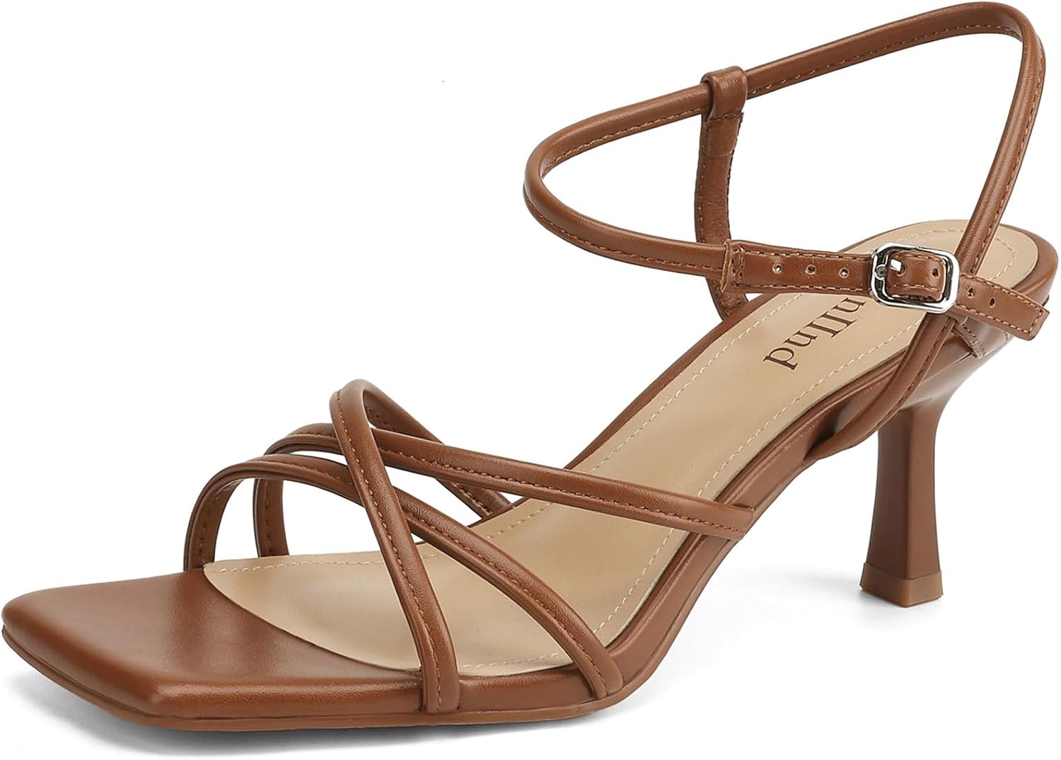 Women's Sandals Square Open Toe Kitten Heels Strappy Ankle Strap Heeled Sandals for Women Comfy Weddings Shoes