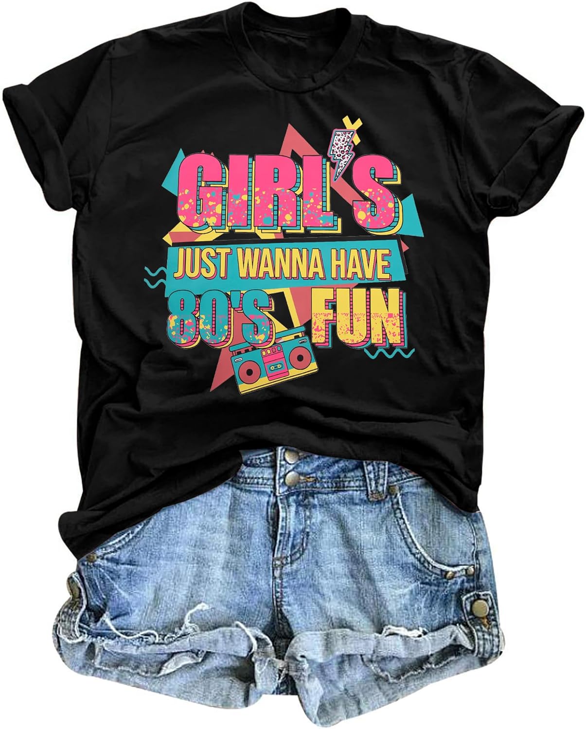 80s Shirts for Women 80's Theme Party Outfit 1980s Disco Short Sleeve T-Shirt Vintage 80's Girl Neon Outfits