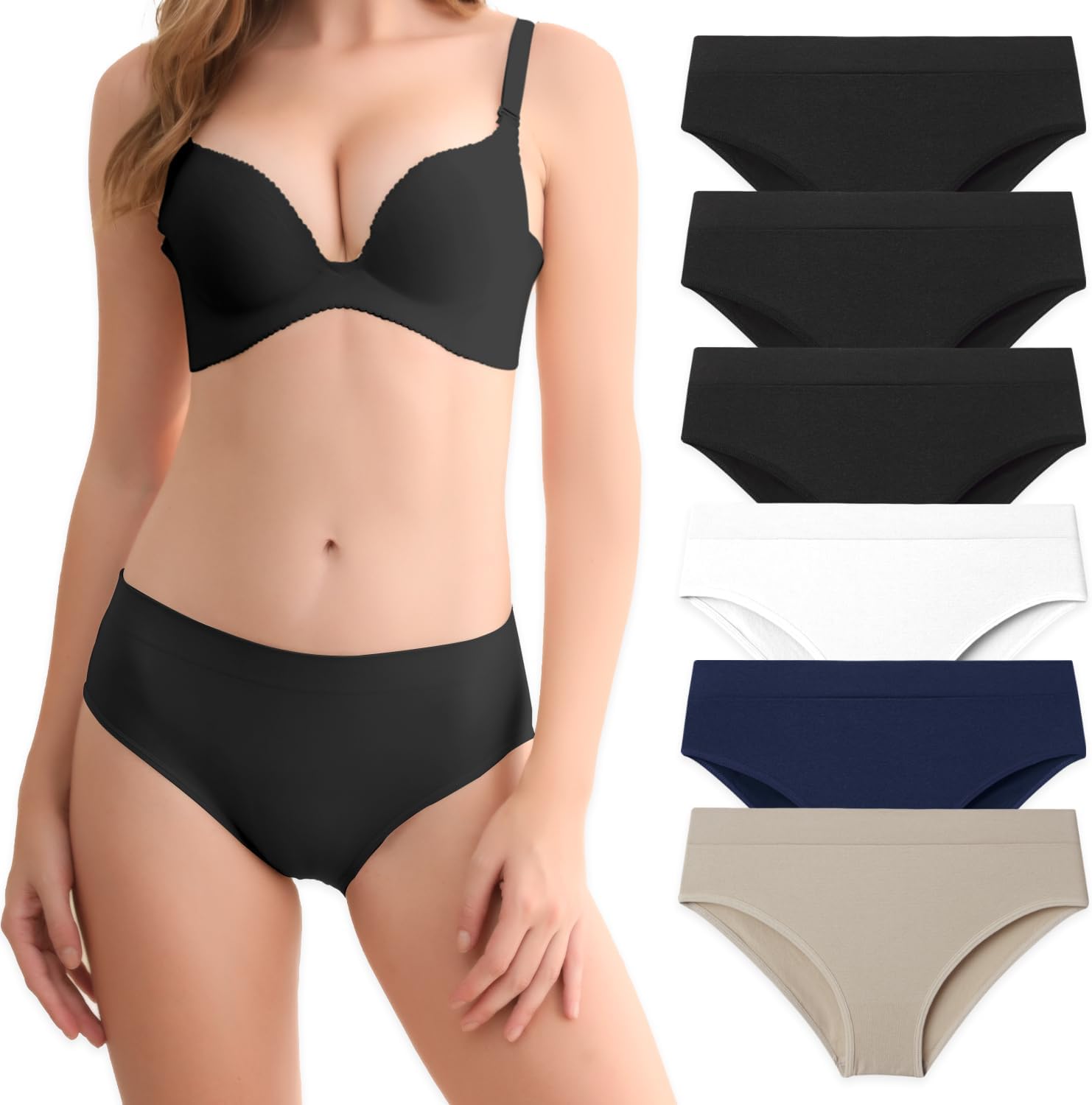 Womens Bikini Panties Seamless Underwear, Soft Stretch Cheekini Hipster Briefs 6 Pack