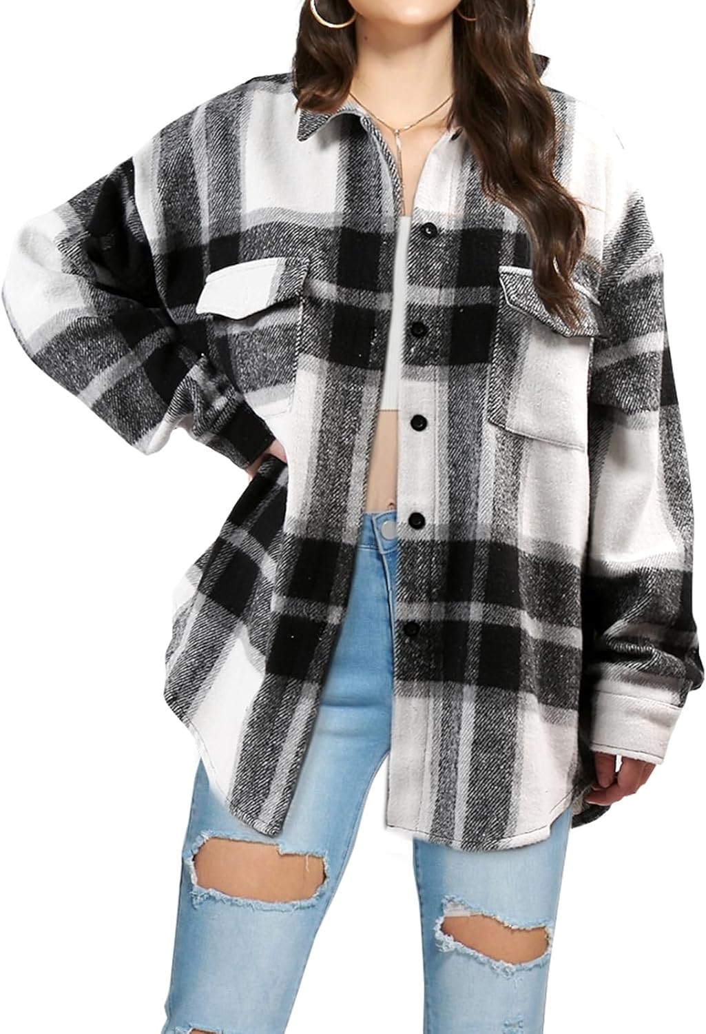 SHEJIZE Women's Casual Shacket Jacket Plaid Shirts Flannel Blouses Button-Down Shirts