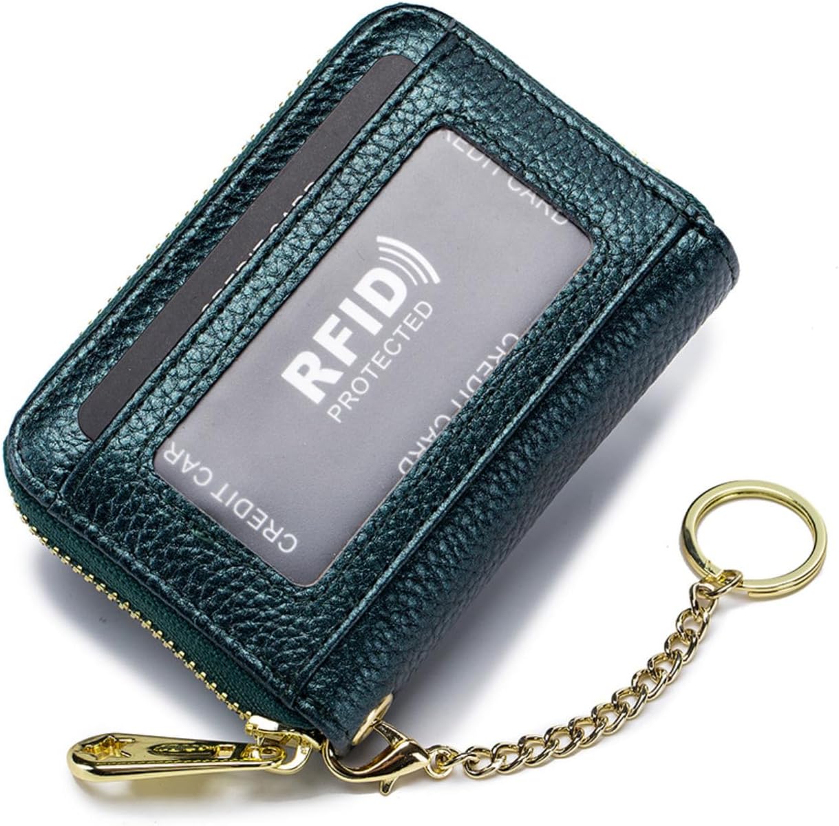 Tapp Collections RFID Credit Card Holder, Small Leather Zipper Card Case Wallet with ID Window & Detachable Keychain - Green