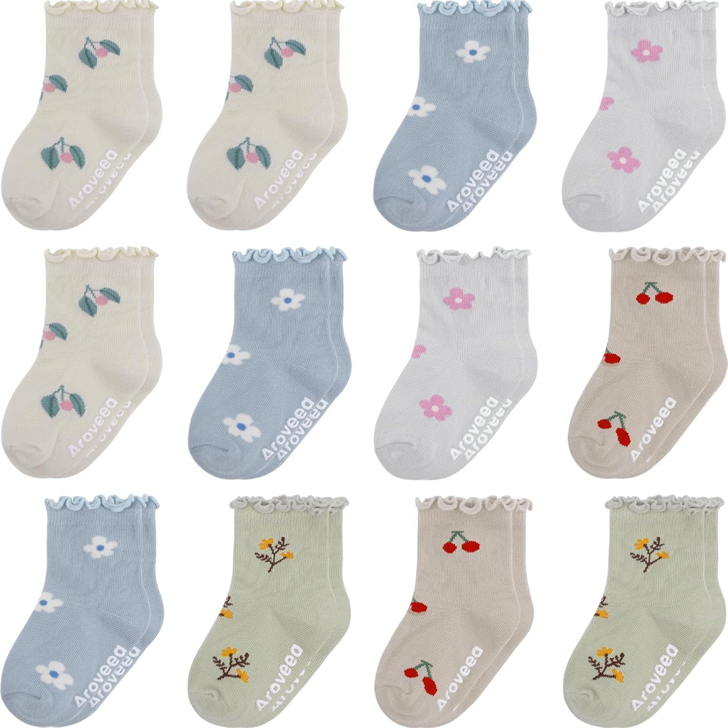 Non Slip Grip Ankle Baby Socks 12 Pack for Toddler Boys and Girls Kids,Infant Cute Cotton Baby Socks