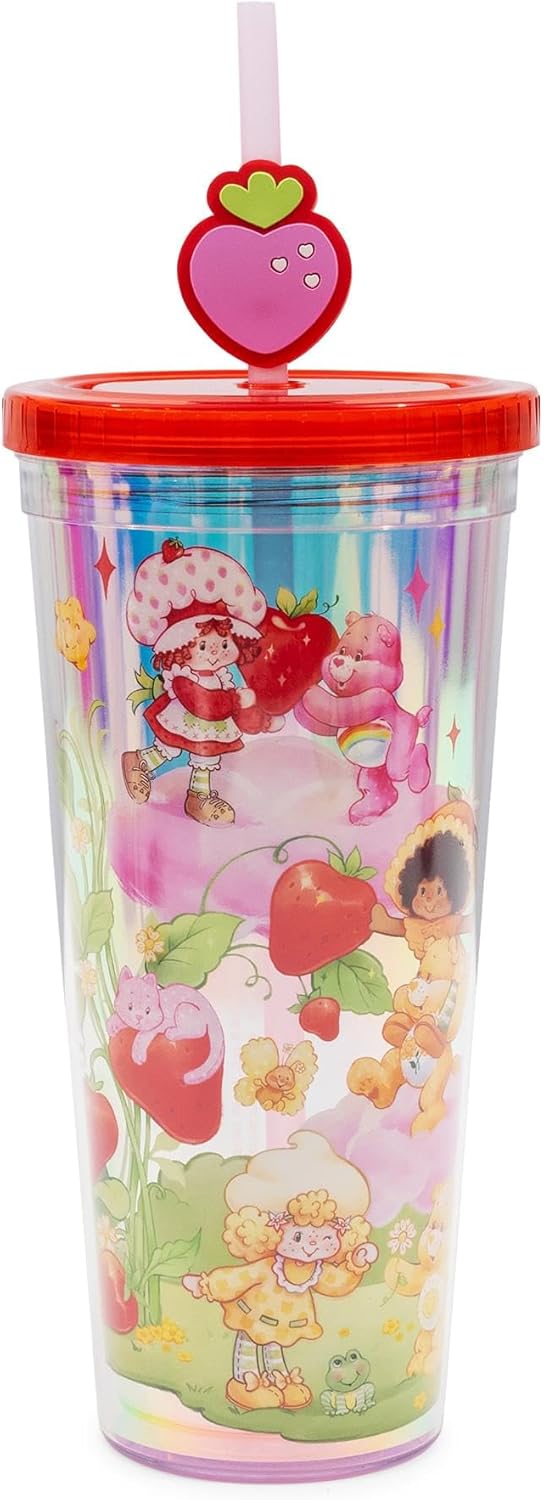 - NOSTALGIC GIFTS: This themed tumbler, with its nostalgic designs, makes a great gift for your favorite Strawberry Shortcake and Care Bears fan. Showcasing beloved characters, this tumbler is perfect for birthdays, holidays, and other gift exchanges.