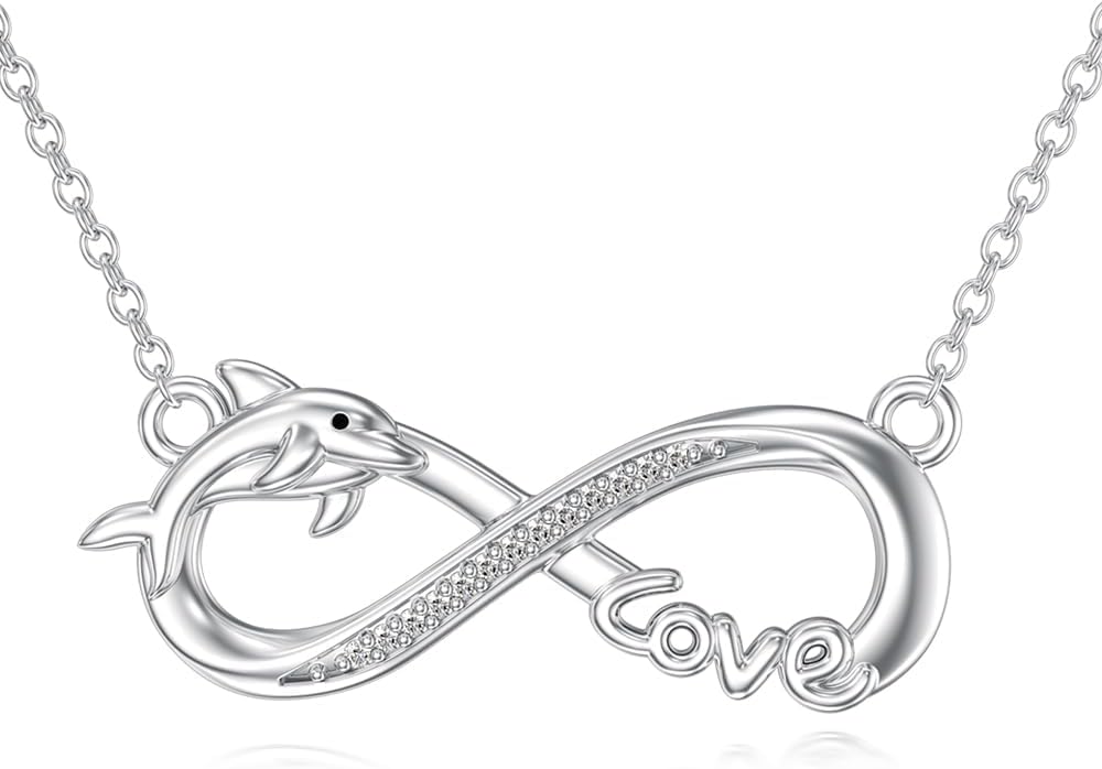 Diamond Dolphin Necklace for Women 925 Sterling Silver Infinity Dolphin Pendant Necklaces with Lab Grown Diamond Jewelry Gifts for Mom Wife