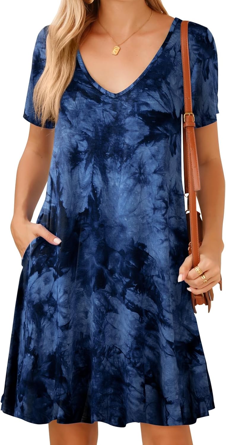 JollieLovin Women T Shirt Plus Size Summer Swing Dresses Short Sleeve V Neck Loose Casual Dress(L-5X)