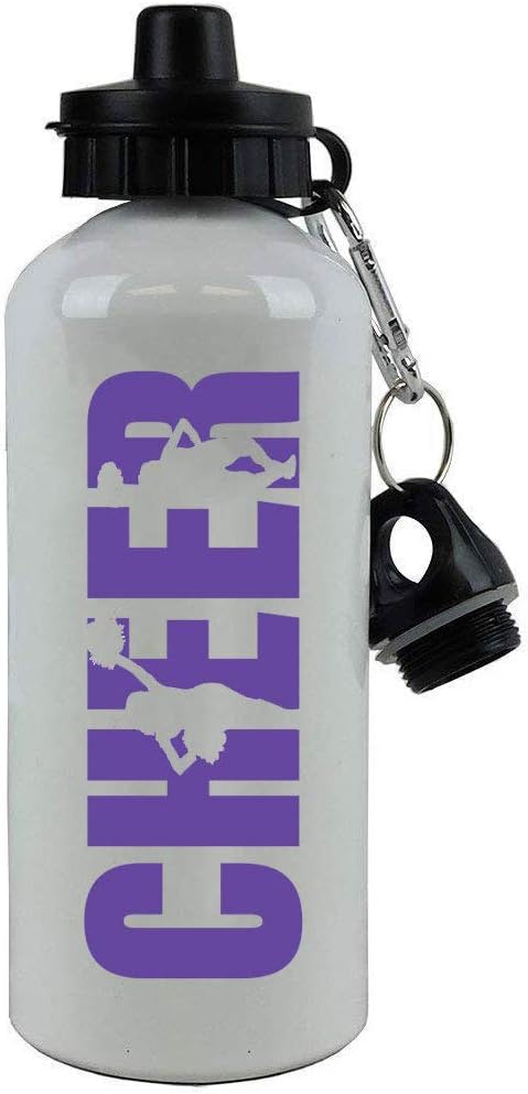 Cheer Cheerleading Aluminum White Finish 20-Ounce Sport Water Bottle, 2 Lids (Purple)