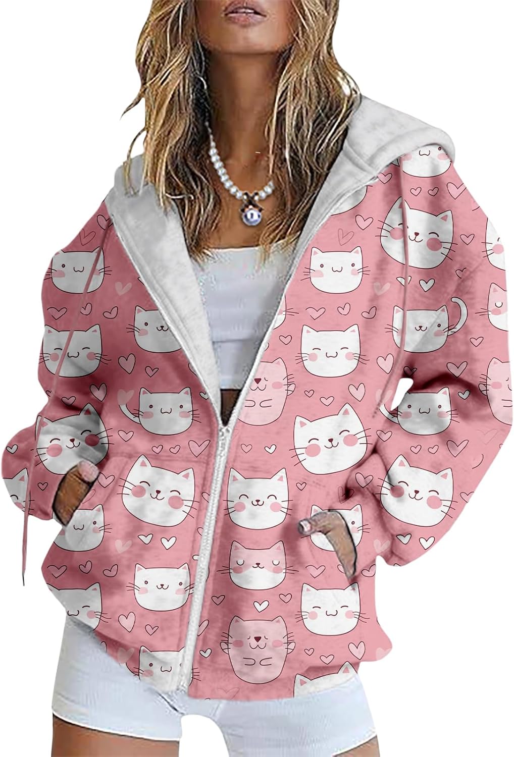 Bengbobar Plus Size Zip Up Hoodies For Women Animal Printed Long Sleeve Hooded Sweatshirts Casual Fashion Jackets Womens