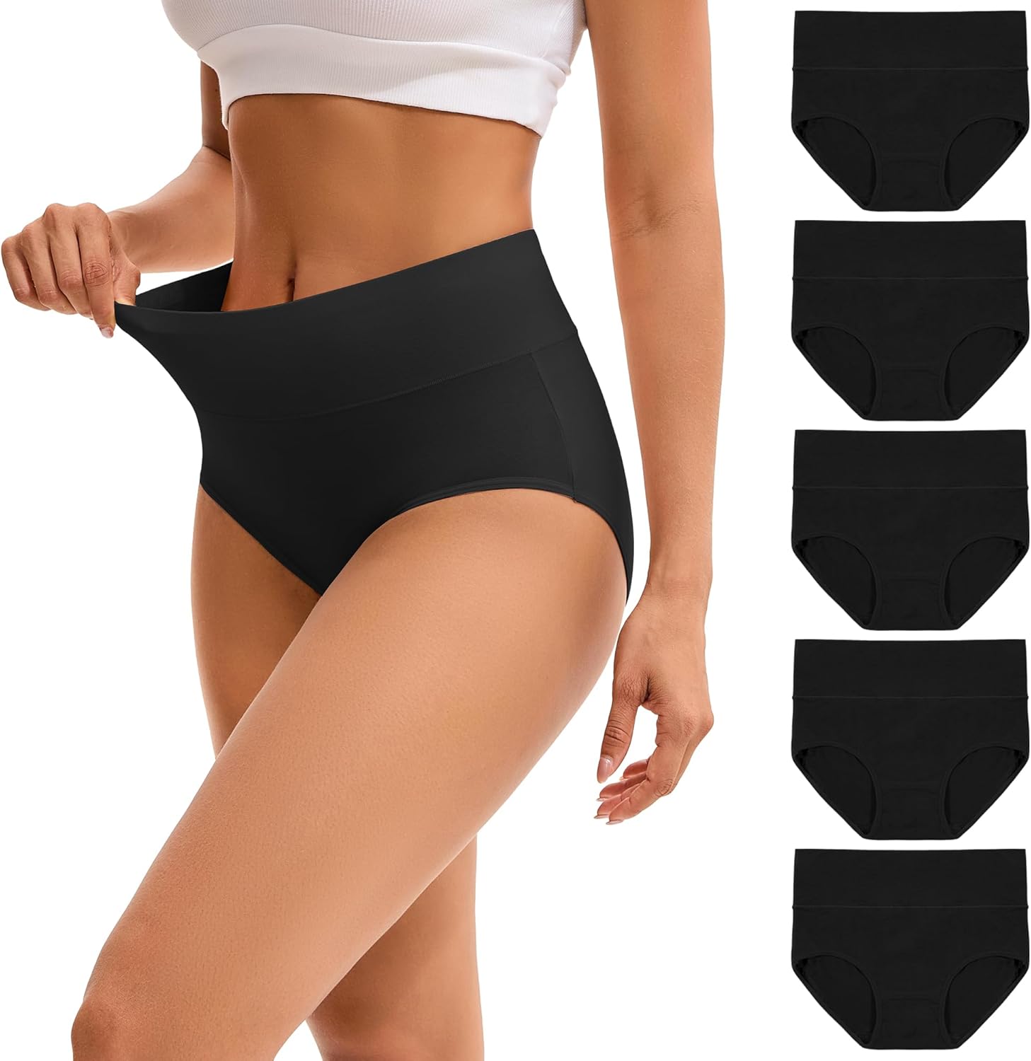 INNERSY Women's High Waisted Underwear Cotton Panties Regular & Plus Size 5-Pack