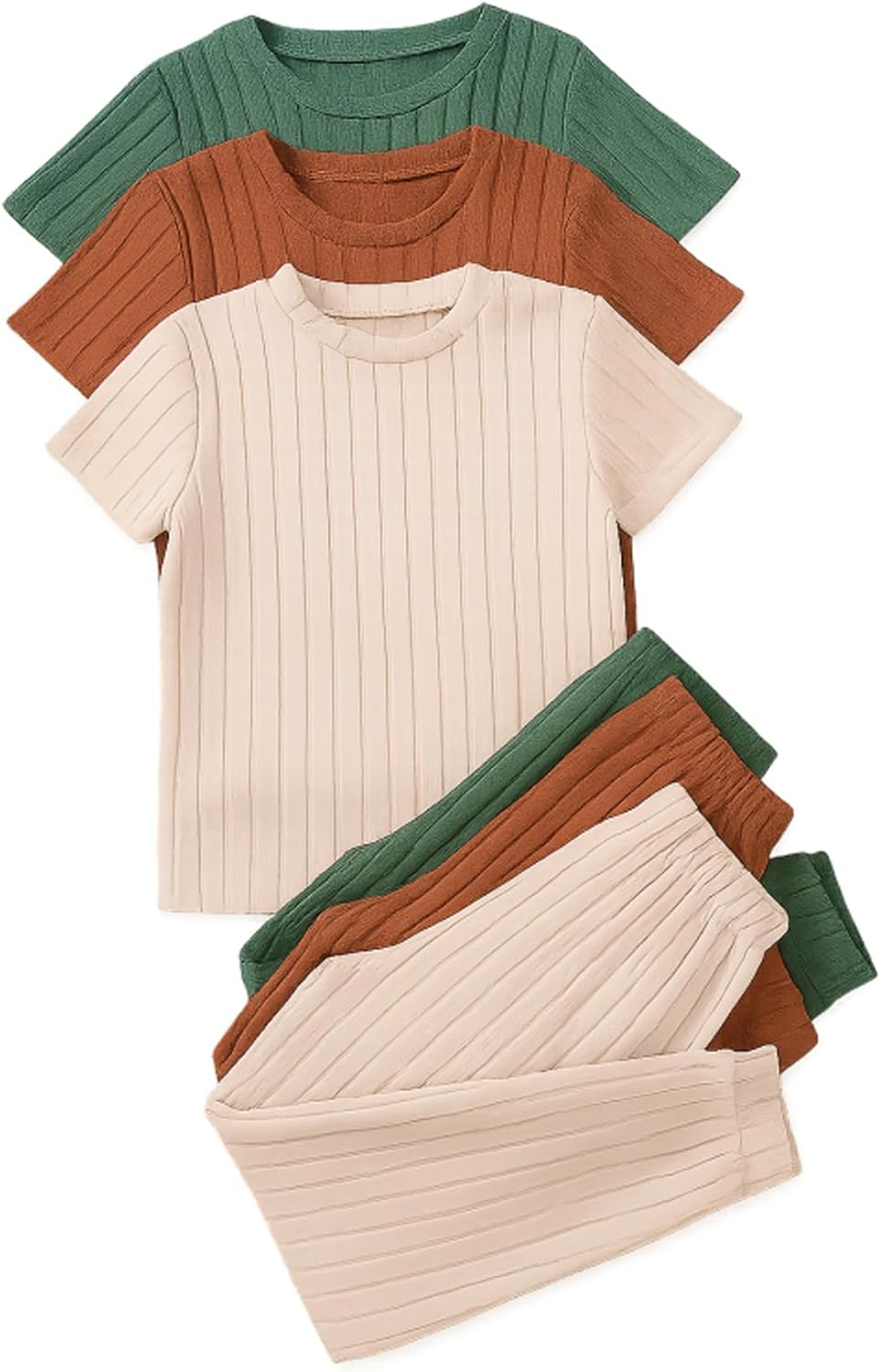 2 Piece Girl Clothes Pants Set Outfits Ribbed Knit Short Sleeve T-Shirt and Active Sweatpants Size 4-12 Years