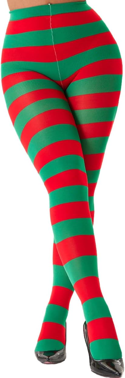 Mrotrida Women's Christmas Striped Tights High Waist Pantyhose Cosplay Stocking Elastic Slim Legging