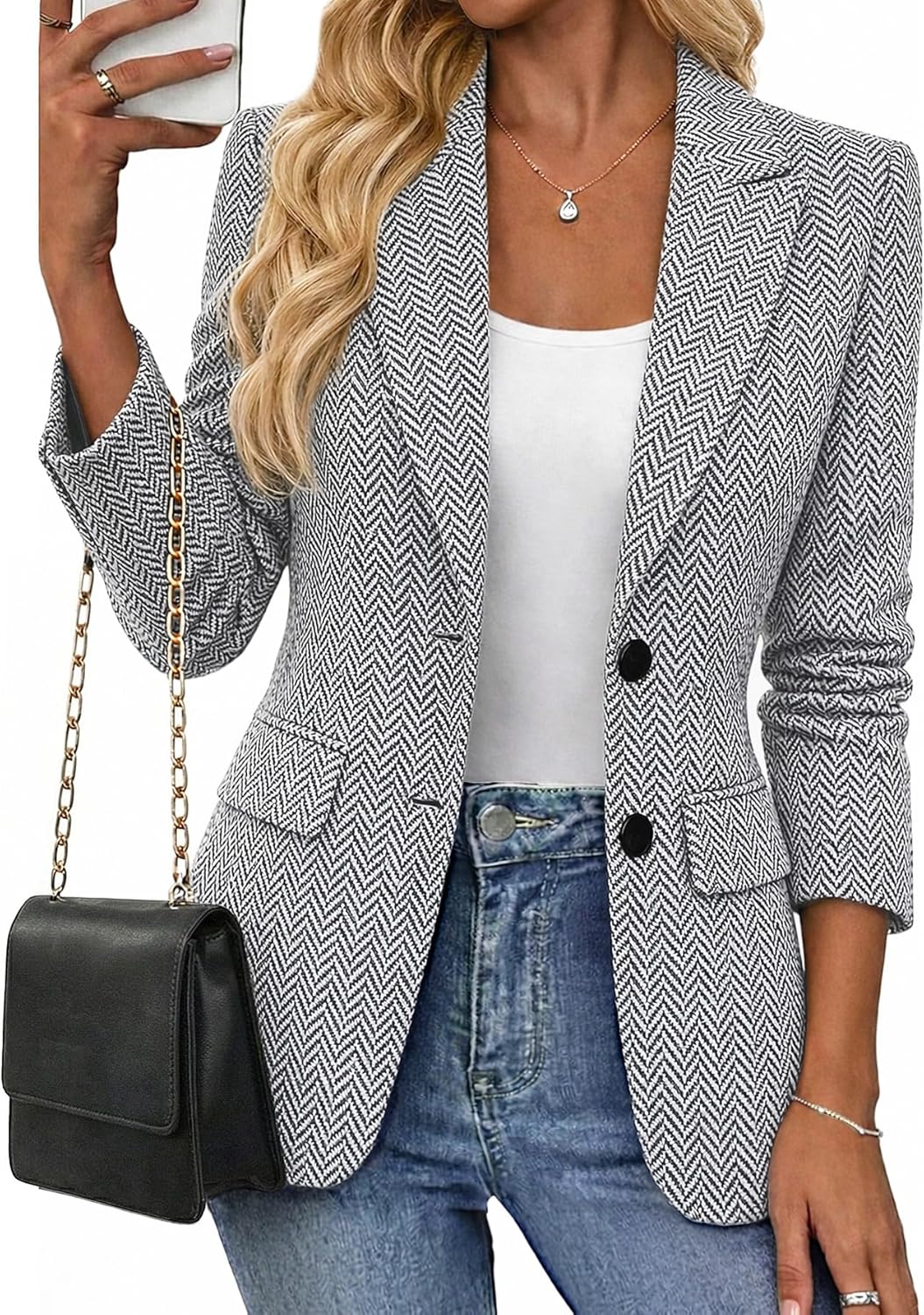 Mina Self 2026 Women's Spring Herringbone Tweed Blazer - Warm Fully Lined Notched-Lapel Plaid Work Office Jacket with Pockets