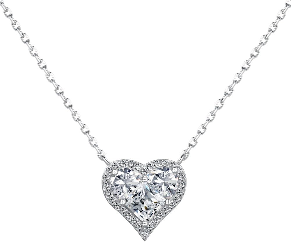 Bezel-Set Moissanite Necklace in 14K Gold,Dainty Heart Shape Moissanite Pendant Necklace,Memorable Jewelry Gift