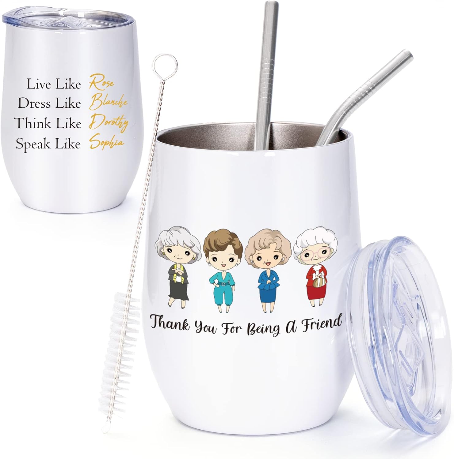 - 🍷 Golden Girls Fans Gifts - Golden girls-themed delicate designs and features a double side design. Inspired by the classic '80s sitcom. Our golden girls wine tumbler brings more character into your life. Best gift idea for golden girls fans. It’s a fantastic gift idea anyone would love! Makes the perfect gift for a birthday, mom, holiday, or Christmas. Have a perfect gift for someone you love, such as your friend or family member. A wonderful way to tell anyone Thank You For Being A Friend!