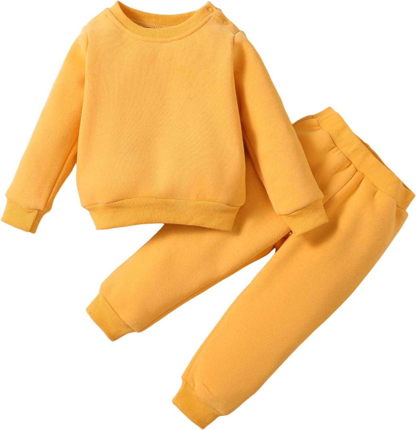 SOBOWO Toddler Baby Boy Clothes Winter Solid Long Sleeve Pullover Sweatshirt Pants 2Pcs Fall Outfits Sweatsuit Set 24M-6Y
