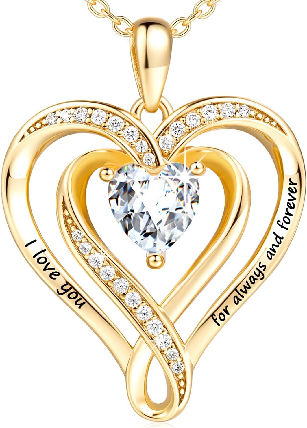 AmorAime 925 Sterling Silver Necklace for Women Heart Necklace 14K Gold Plated Neclaces or Rose Gold Plated