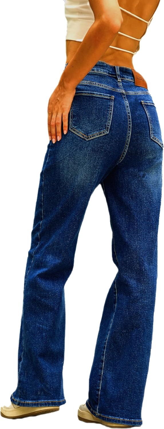 High Waisted Jeans for Women - Tummy Control Stretchy Straight Leg Denim Pants Trouser Trendy